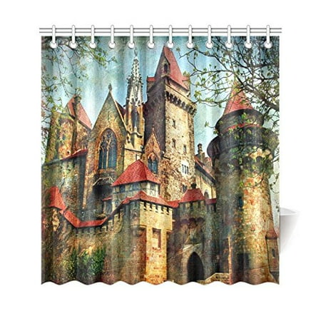 Gckg Medieval Castle Shower Curtain Vintage Style House City