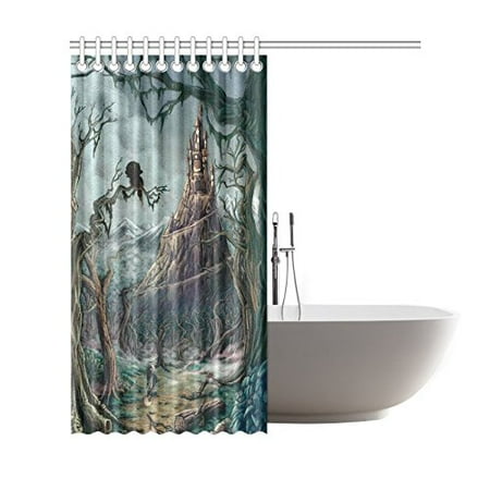 Gckg Halloween Spooky Castle Shower Curtain Wooden Trees