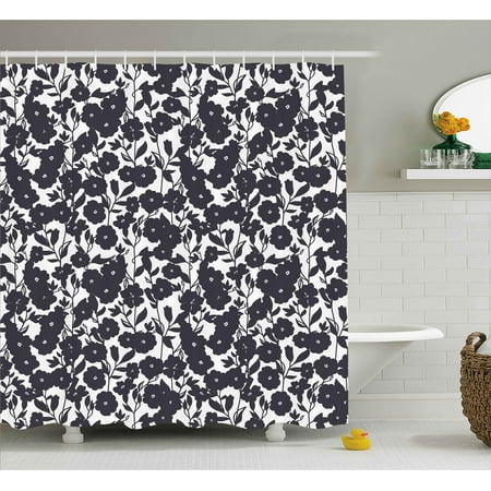 Floral Shower Curtain Dark Charcoal Black Gardening Flowers