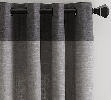 Emery Border Linen Cotton Grommet Curtain Gray Charcoal