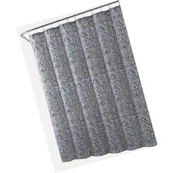 Printed cloth medallion damask design. Durable buttonhole construction is compatible with various style shower hooks and rings. The fabric shower curtain features a weighted magnetic hem keeping it close to the tub walls.