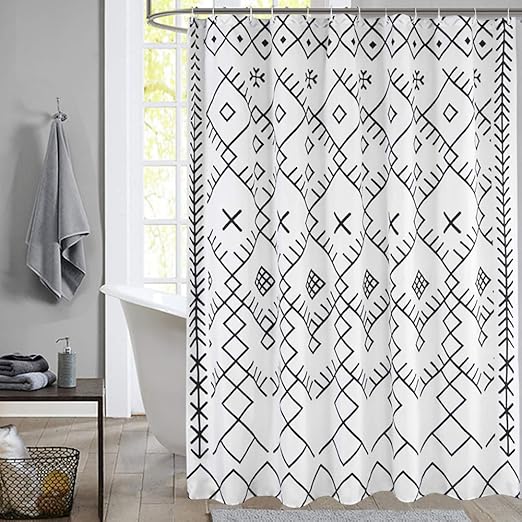 70 by 70 black white geometric design cloth fabric shower curtain. These 2 solutions should work. Threshold black fabric shower curtain 72 x 72 black ikat new free shipping see more like this.