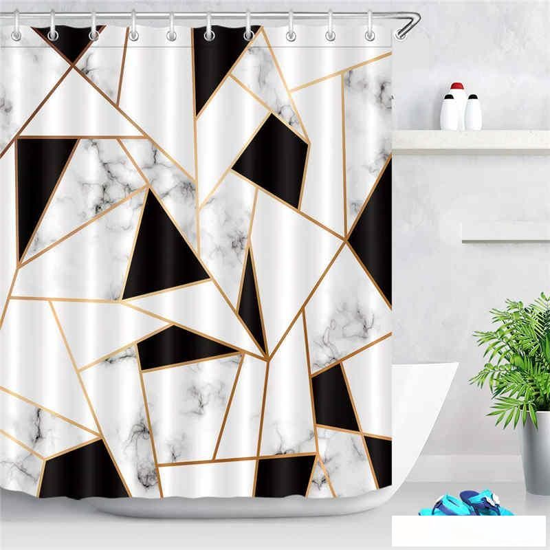 2020 Abstract Geometric Shower Curtain Black And White Marble