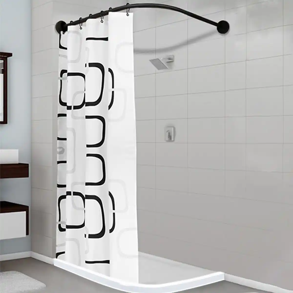 Extendable Corner Shower Curtain Rod Pole Black Stainless Steel