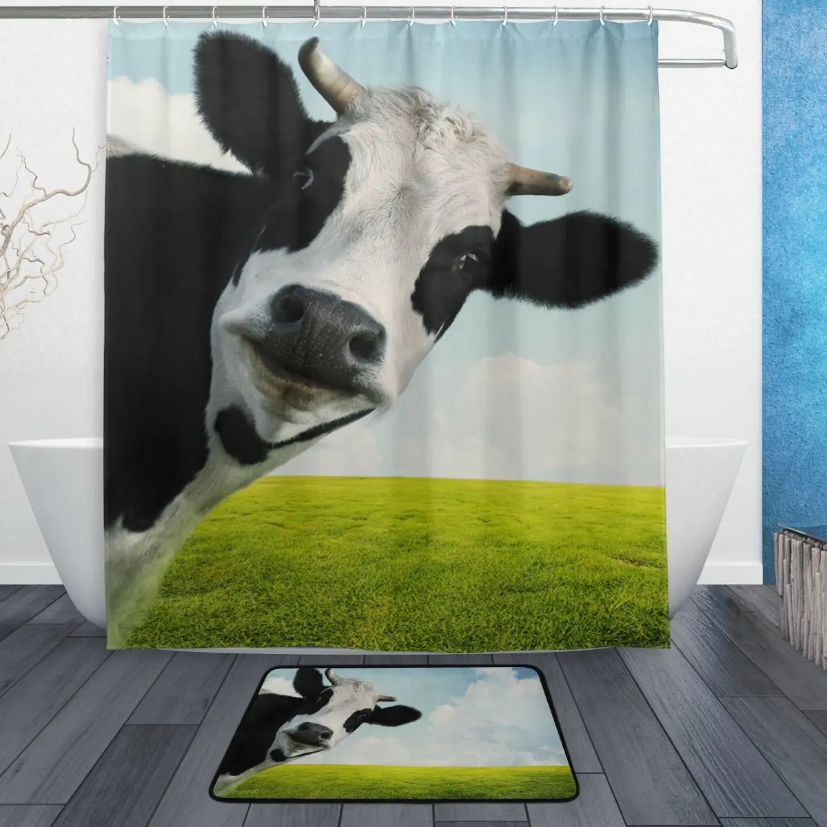 Funny Ranch Cow Hd Print Shower Curtain Non Slip Bath Mat Toilet
