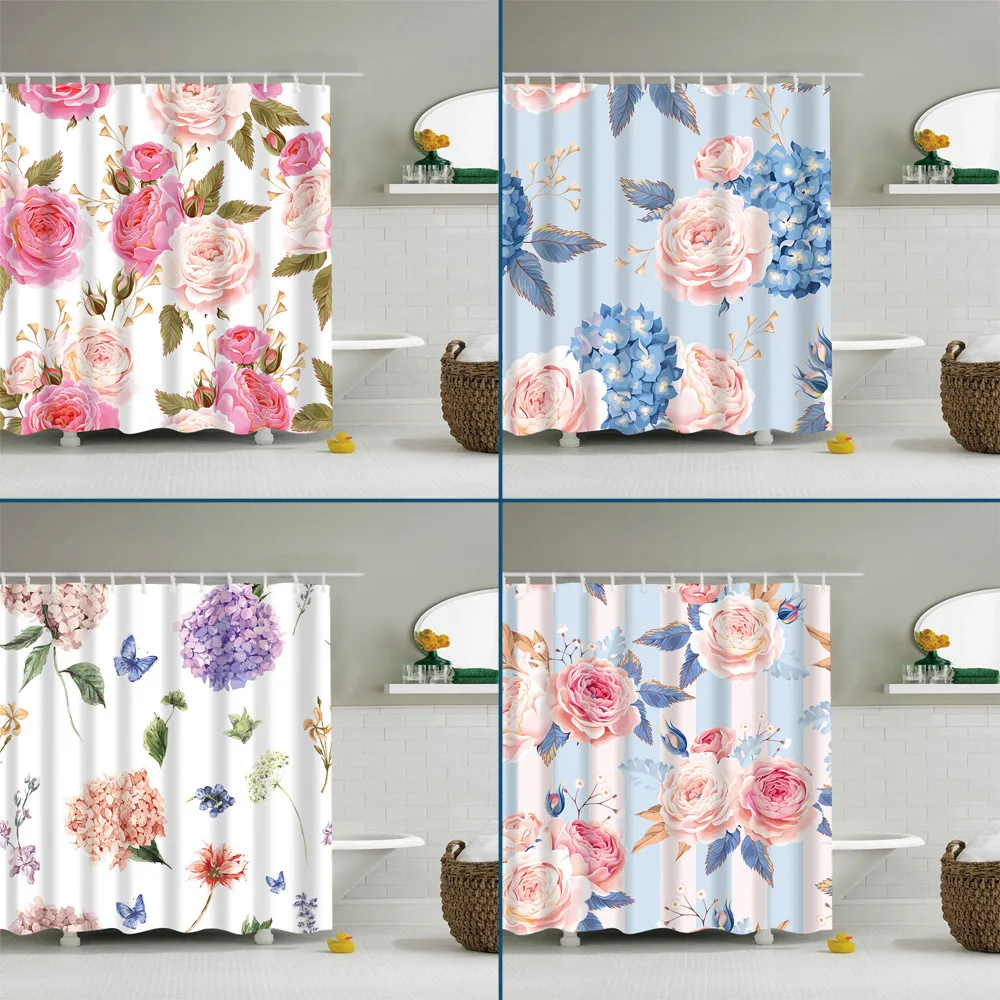 Ouneed Shower Curtains Flowers Printing Waterproof Cute Bath