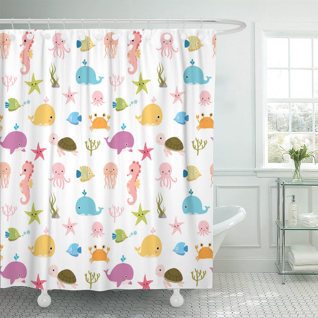 Amazon Com Tompop Shower Curtain Blue Cute Colorful Sea Animals