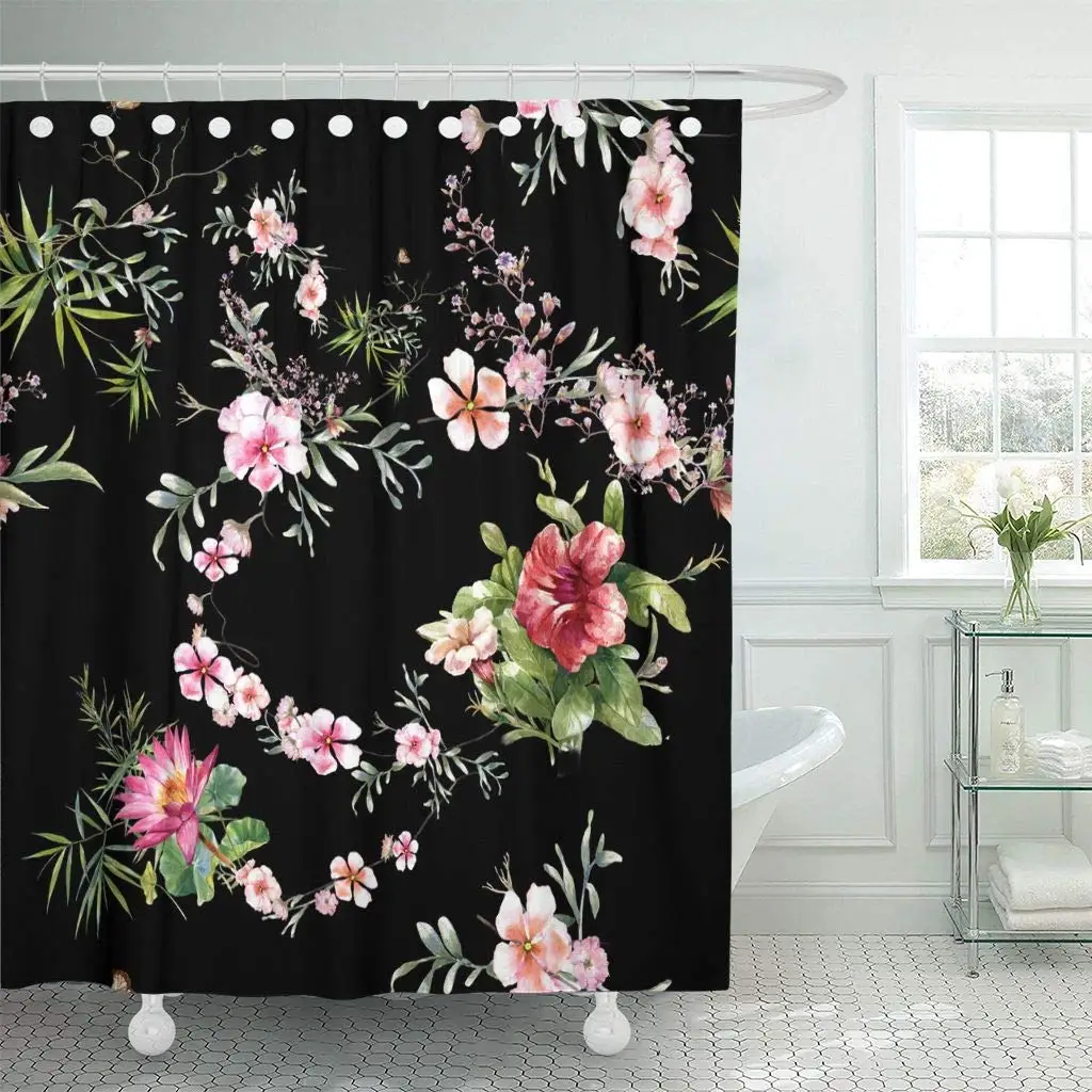 Topical Leaves Shower Curtains For Bathroom Modern Dark Green