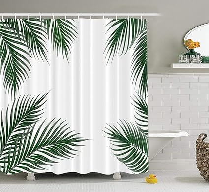 Asoco Fabric Shower Curtain Tropical Dark Green Palm Leaves Four