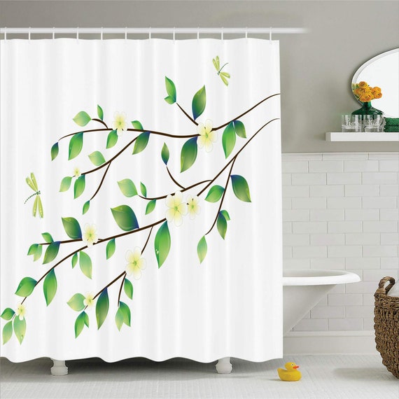 Dragonfly Shower Curtain Leaves With Little Dragonflies And Etsy