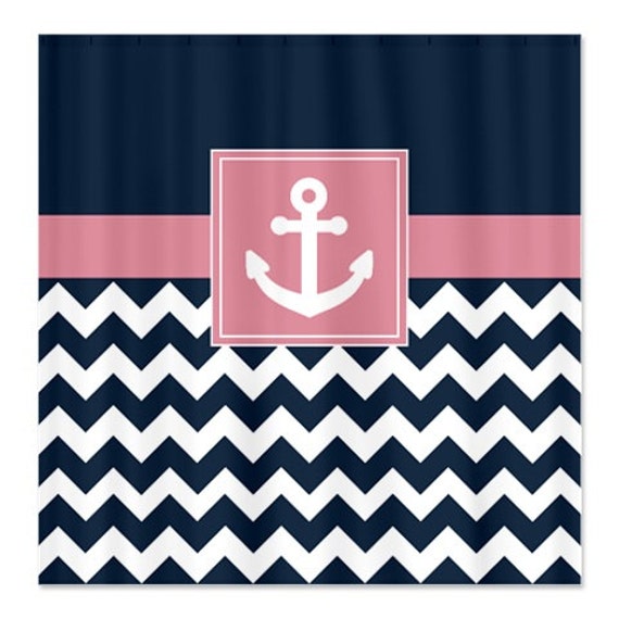 Nautical Shower Curtain Navy And White Chevron Dusty Rose Etsy