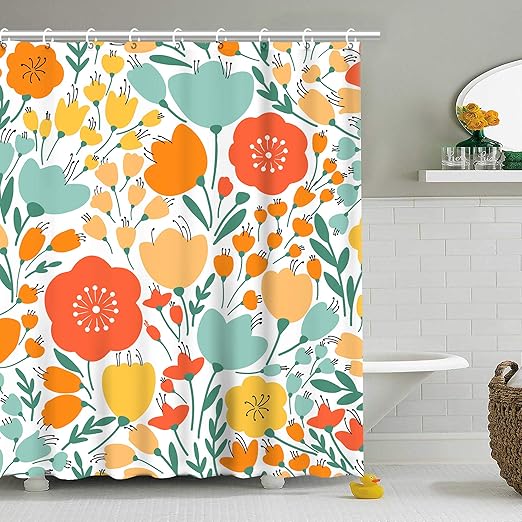 Floral Multi Colored Fabric Shower Curtains Shower
