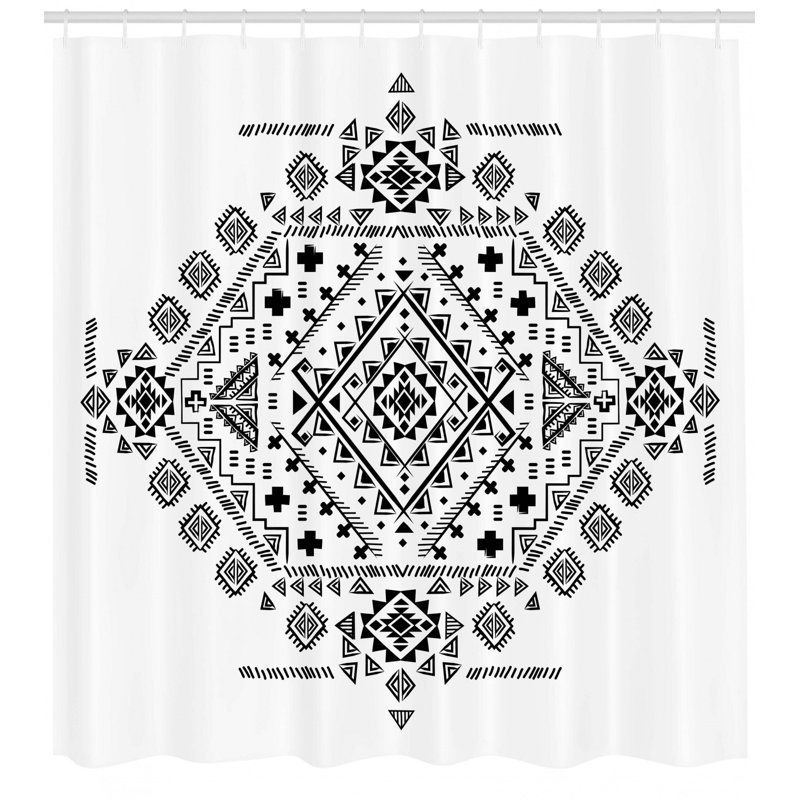Black And White Boho Chic Shower Curtain Set Geometric Etsy