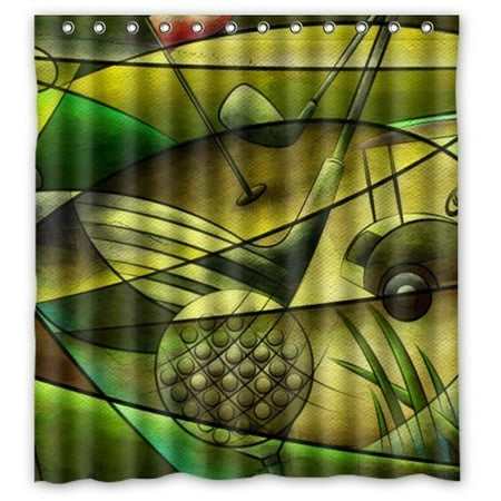 Greendecor Cool Golf Ball Art Waterproof Shower Curtain Set With