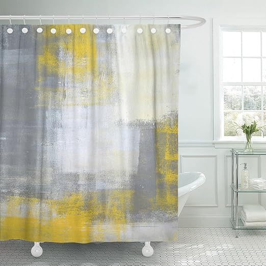Amazon Com Emvency Shower Curtain Gray Blocks Grey And Yellow