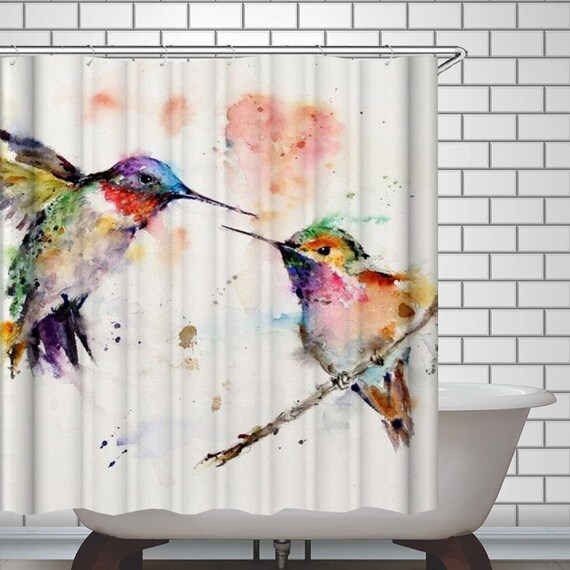 Hummingbird Shower Curtain Watercolor Hummingbirds Shower Etsy