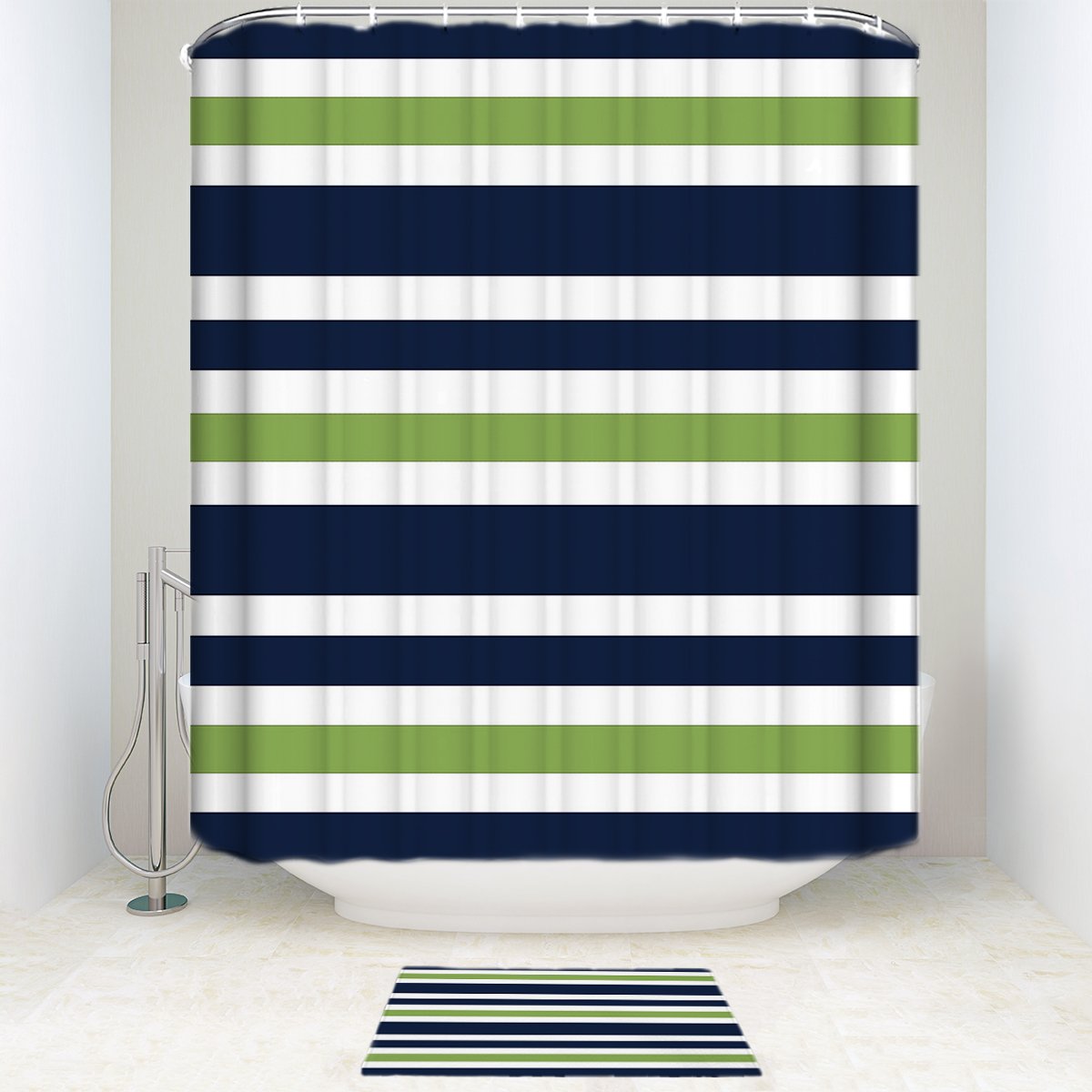 Lilymua Striped Shower Curtain Navy Blue And White Striped Twill