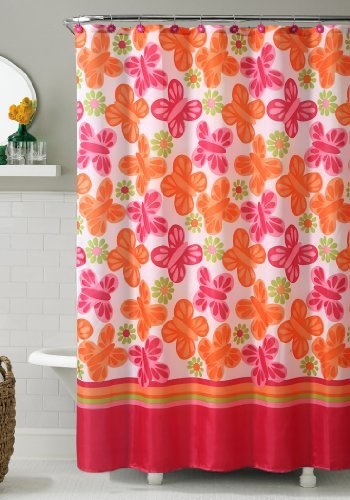 Victoria Classics Orange And Pink Printed Fabric Shower Curtain