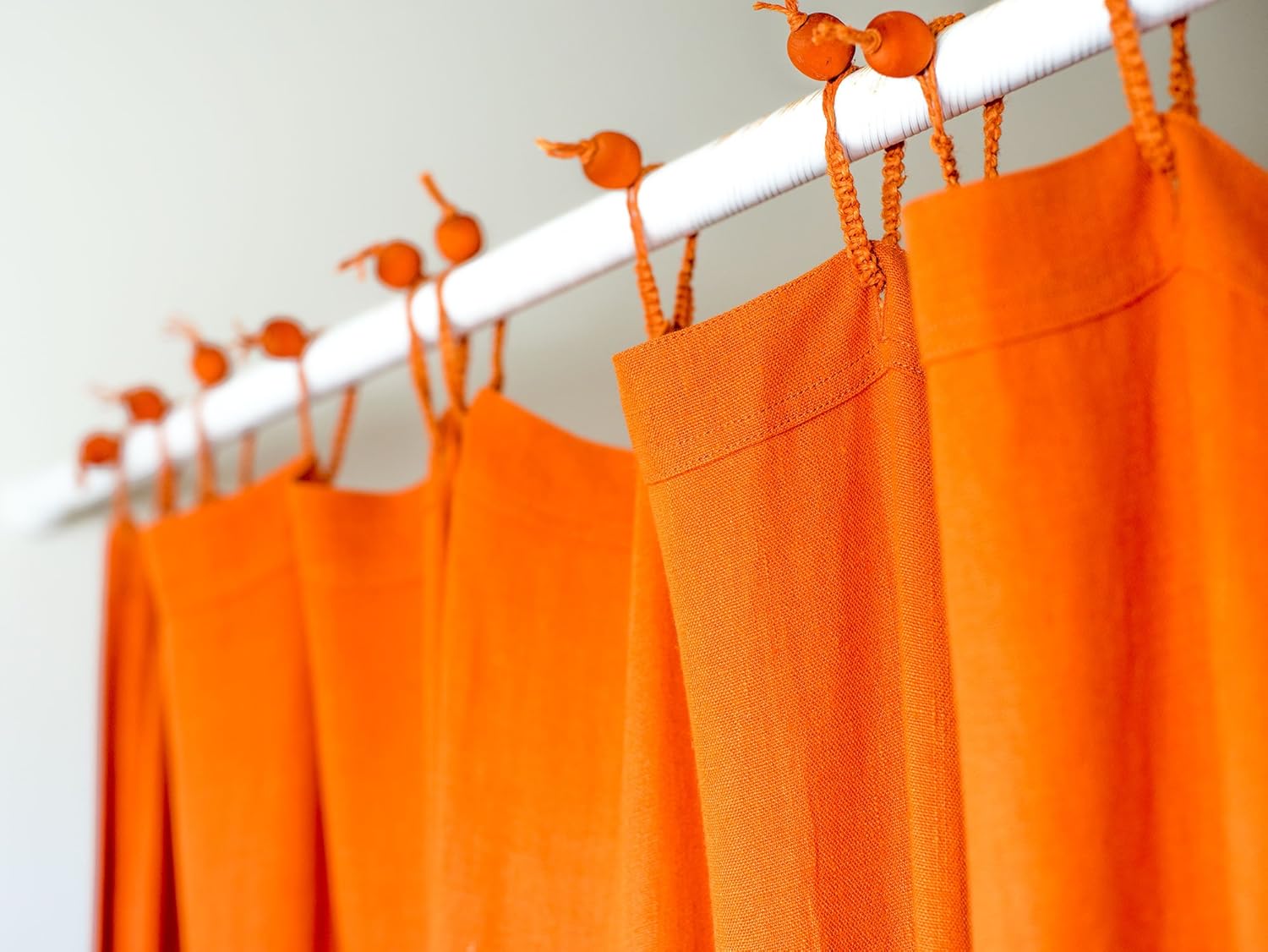A special feature are the handmade organic hemp macrame rings with natural wooden button closure. Per one site the shower curtain will get wet but will not leak through. No plastic or vinyl liner required.