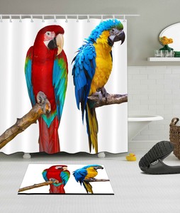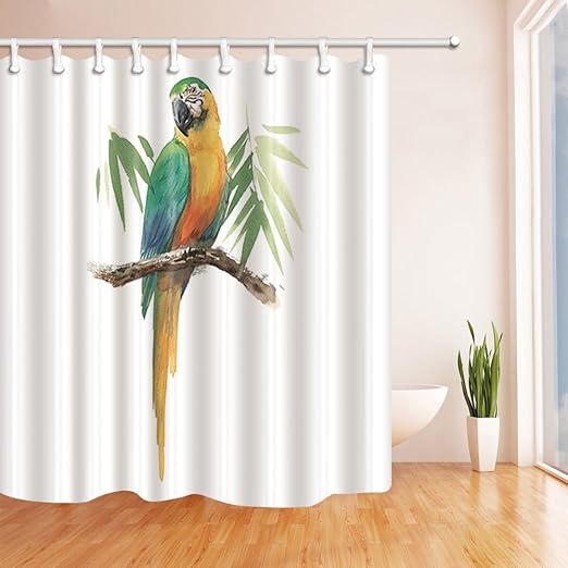 Skip to main content. This blue parrot shower curtains with watercolor print include 12 hook holes and is machine washable. This watercolor blue parrot bird shower curtain made by waterproof fabric polyester the blue parrot pattern shower curtain is suitable design for parrot bird home bath decoration style.