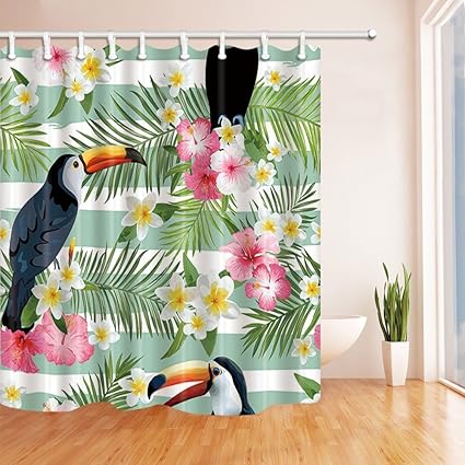 Afagahahs fabric shower curtain curtains with hooks colorful vintage bird pattern watercolor green brazil parrot animal hawaii flower jungle toucan waterproof decor bathroom. And dont miss out on limited deals on parrots shower curtain. These shower hooks may include shells or fish on the end of them.