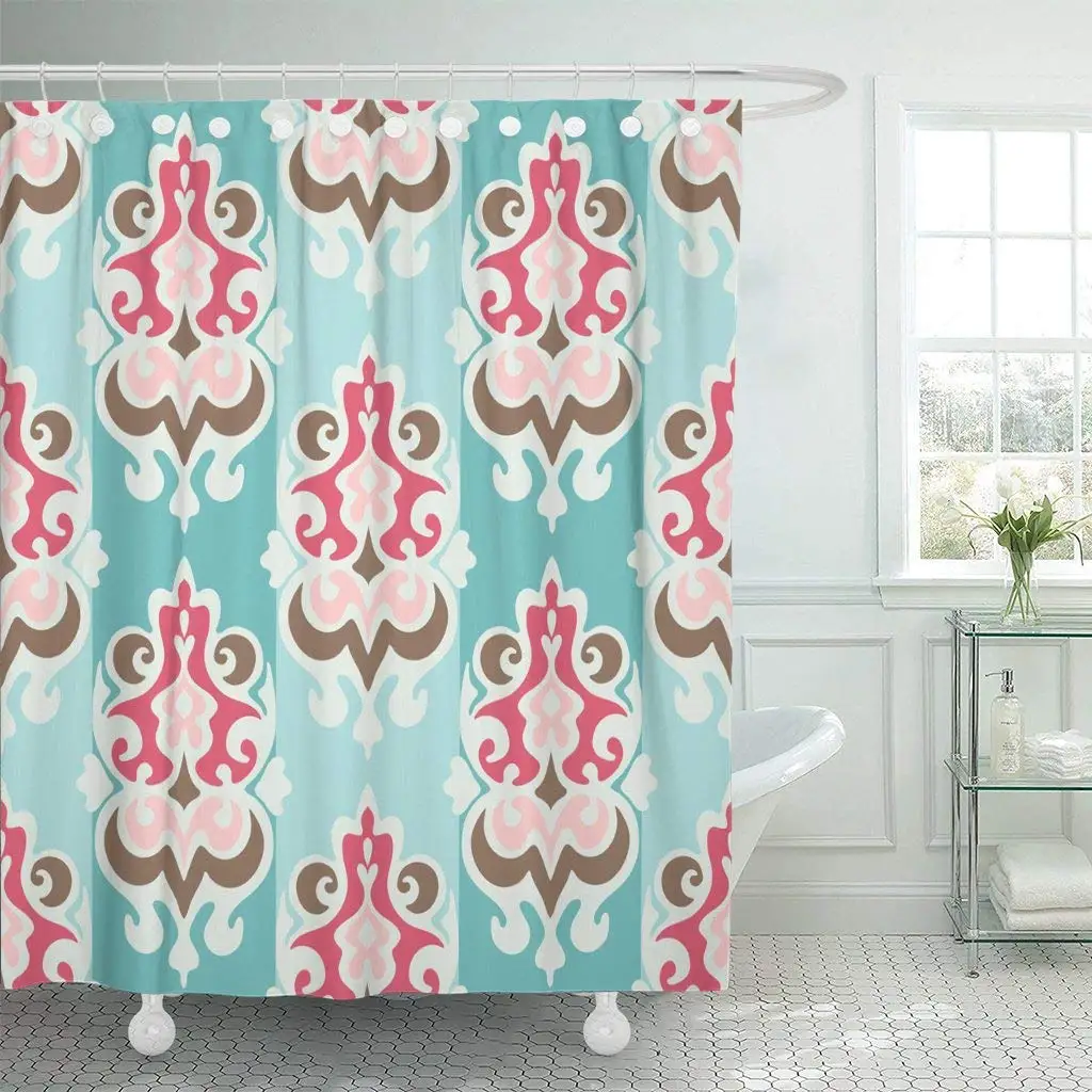 Shower Curtain With Hooks Pink Baroque Striped Damask Design Red