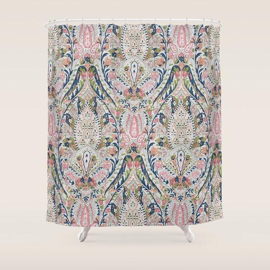 Pink Blue Green Leaf Flower Paisley Shower Curtain By Jamesmichals