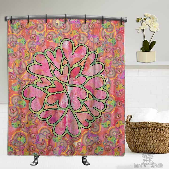 Paisley Shower Curtain Hearts Boho Shower Curtain Shower