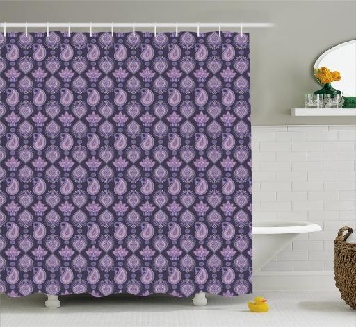 Pink Purple Blue Paisley Design Fabric Shower Curtain Digital Art