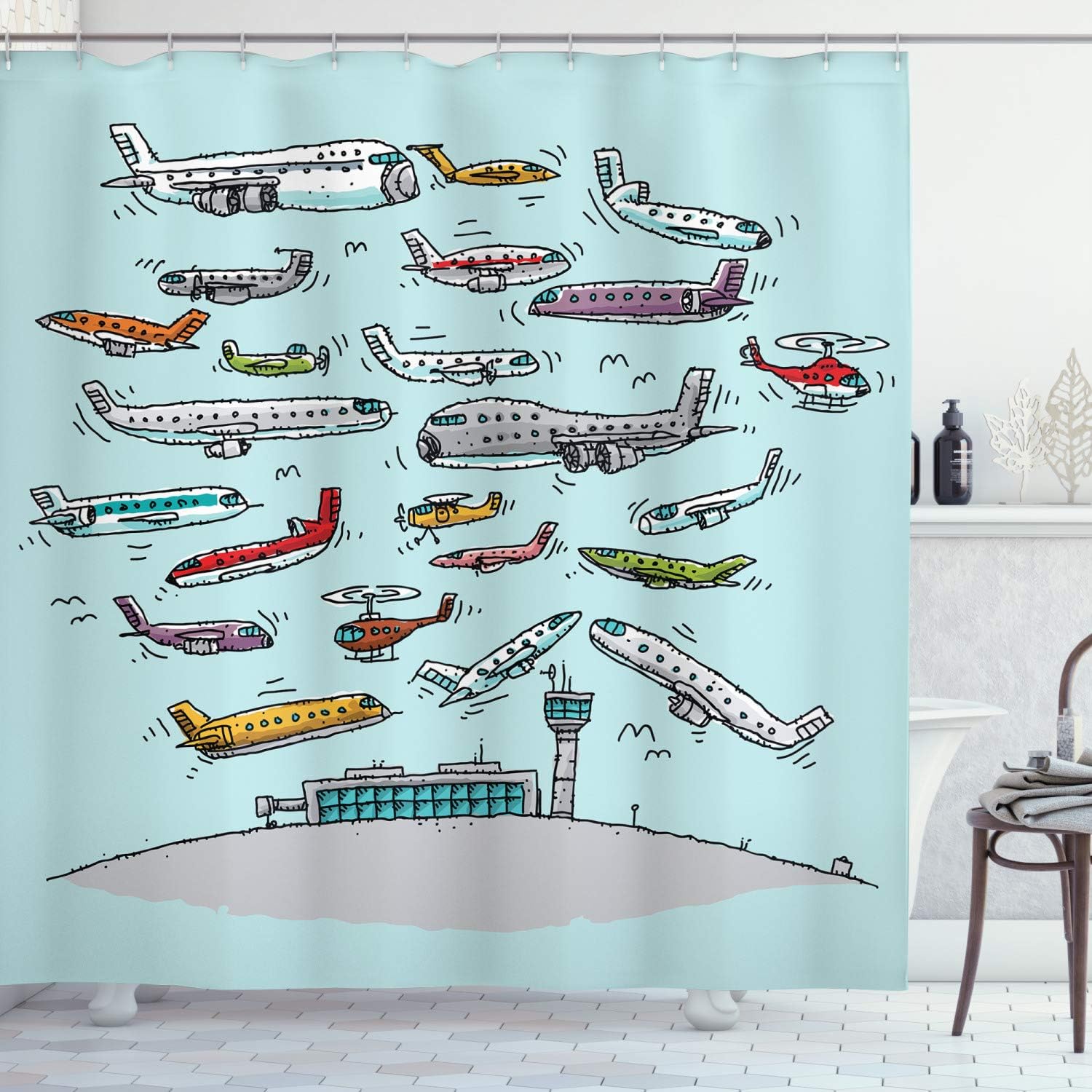 Amazon Com Ambesonne Airplane Shower Curtain Illustration Of