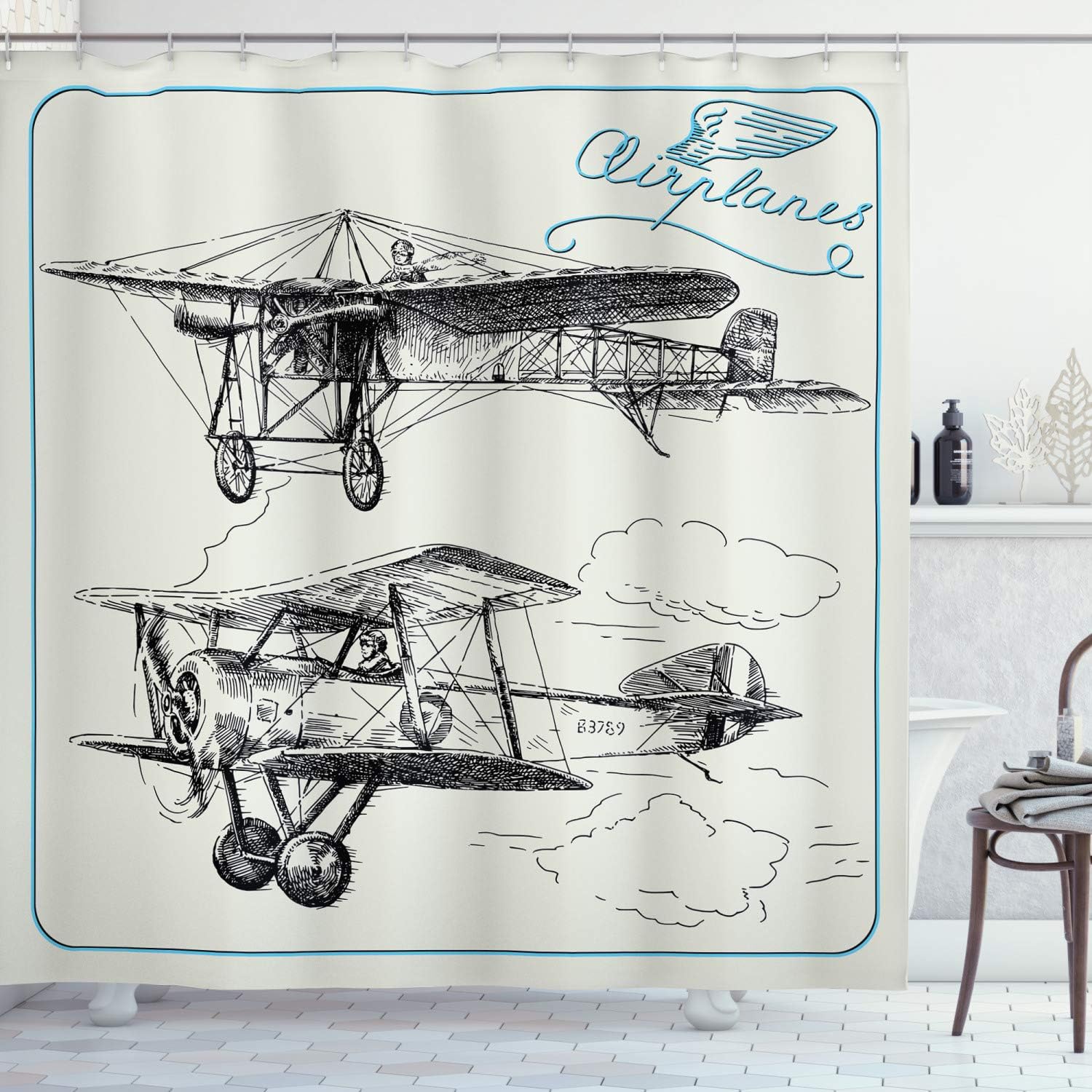Amazon Com Ambesonne Airplane Shower Curtain Classic Nostalgic