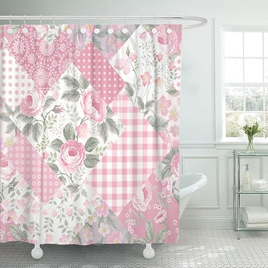 Quilted Shower Curtain Home Floral Patchwork Inch X Pink Rizal
