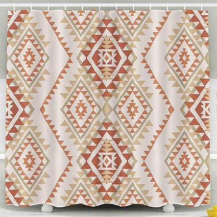 Ethnic Pattern Patchwork Waterproof Fabric Shower Curtains Set