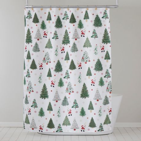 Santa S Trees Shower Curtain And Hooks Set Bed Bath Beyond