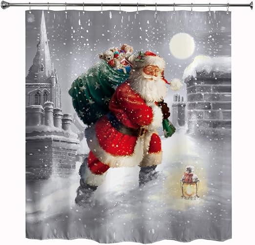 Bigbolo Winter Scene Flying Santa Shower Curtain