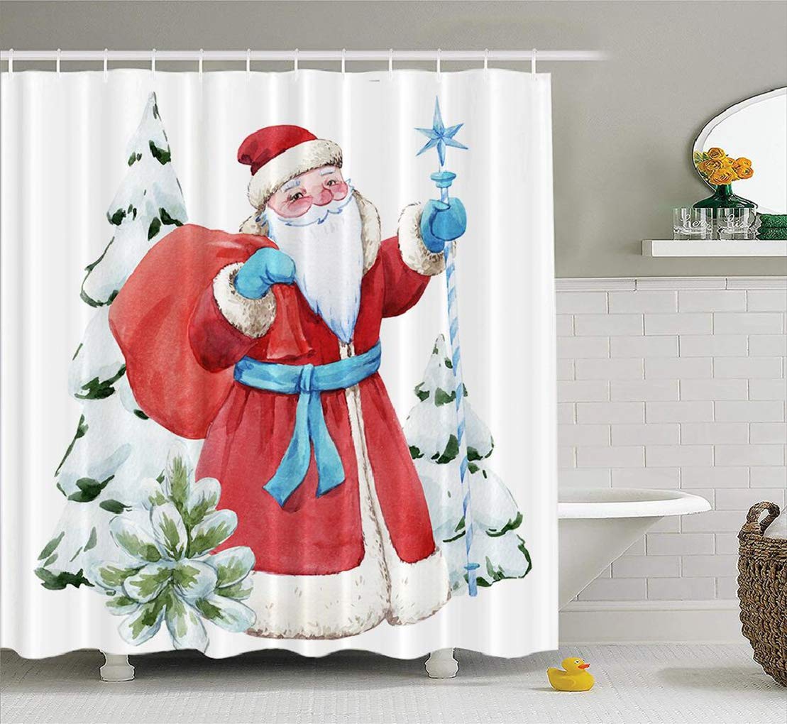 Amazon Com Ansote Watercolor Cute Santa Shower Curtain Set