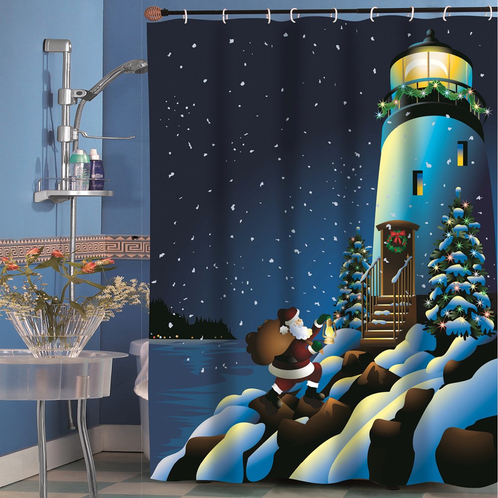 Holiday Lighthouse Santa Shower Curtain Collections Etc