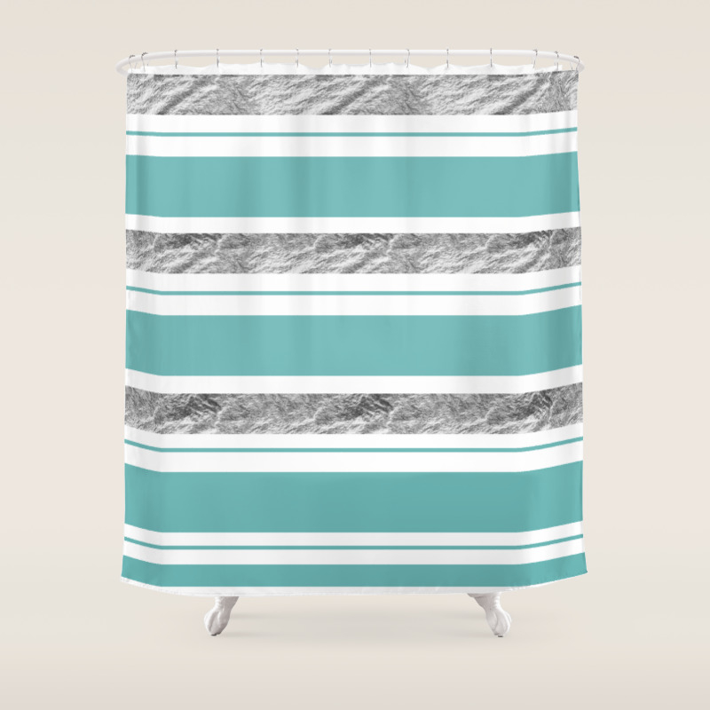 Aqua Blue Stripe With Silver Shower Curtain By Seafoam12 Society6