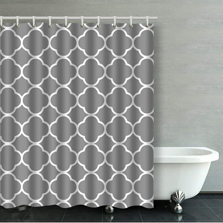 Artjia Silver Grey Moroccan Quatrefoil Bathroom Shower Curtain