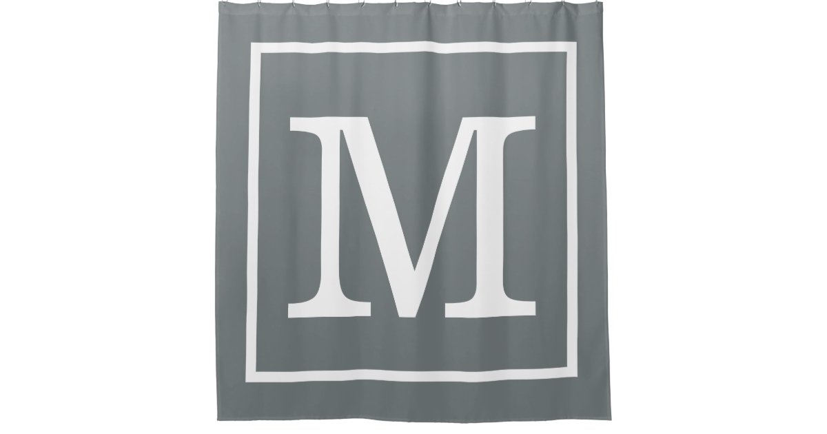 Charcoal Gray White Framed Xl Initial Monogram Shower Curtain