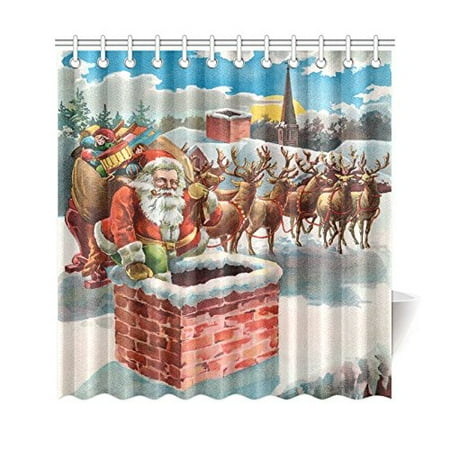 Gckg Merry Christmas Shower Curtain Vintage Santa Claus Reindeer