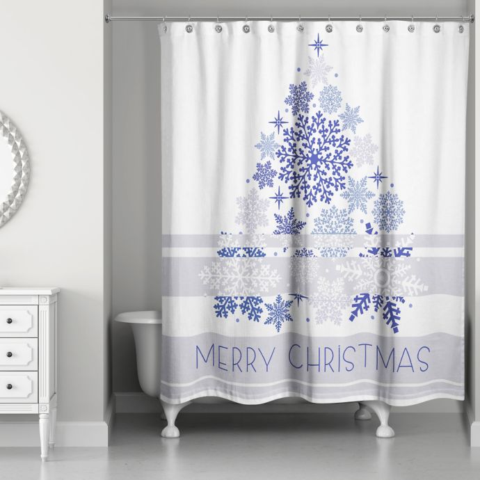 Elegant Blue Christmas Shower Curtain In White Blue Bed Bath