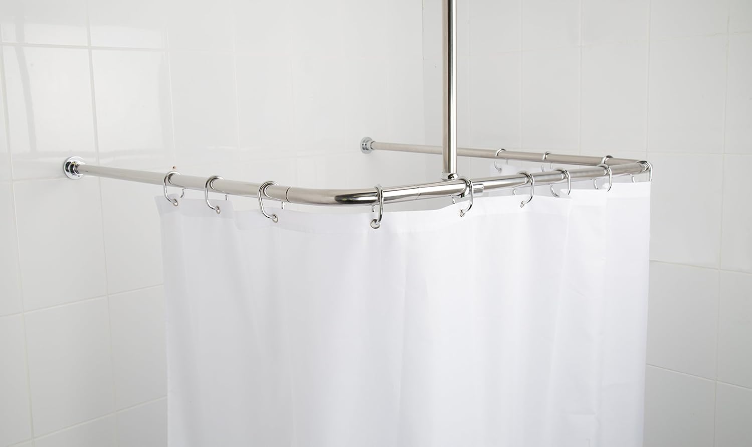 Croydex Square Shower Curtain Rod And Rings Chrome Plated