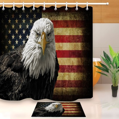 Flag Eagle 72x72 Shower Curtain 12 Holes Set Or Bathroom Mat