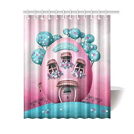 Gckg Happy Easter Shower Curtain Pink Easter Egg Formed House