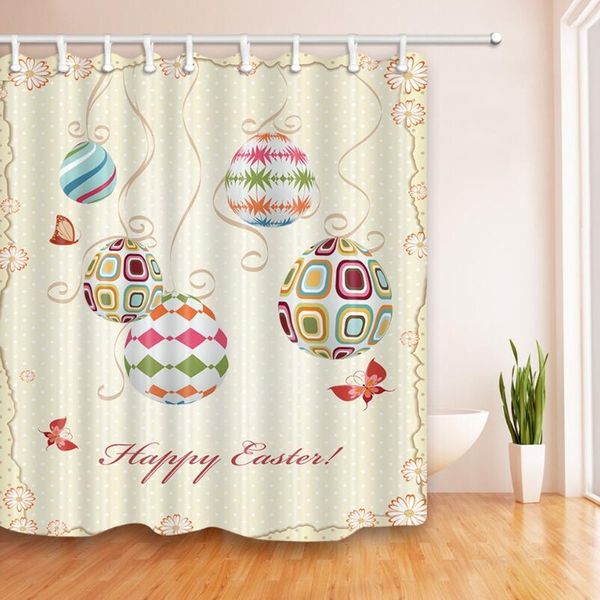 Easter Shower Curtain With 12pcs C Shaped Hooks Bathroom Pedestal