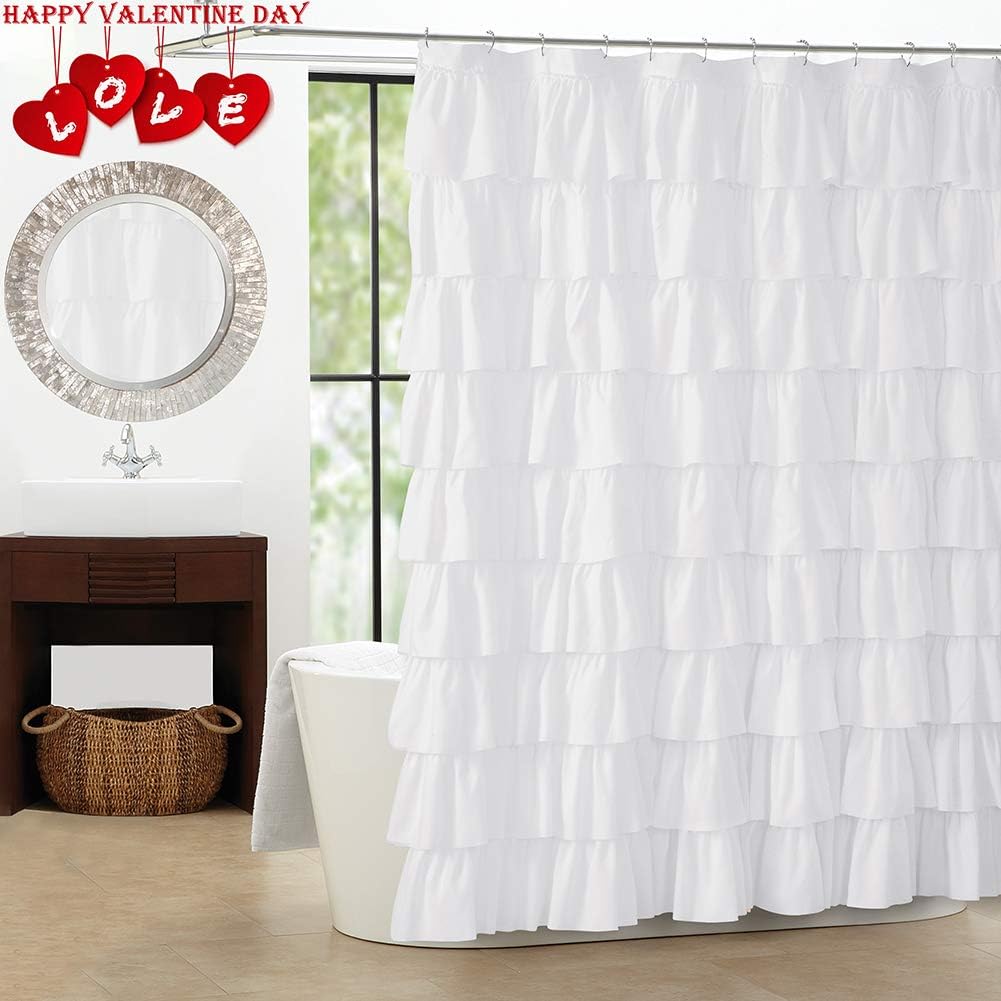 Yostev Grey Ruffle Shower Curtain Farmhouse Fabric Cloth Shower