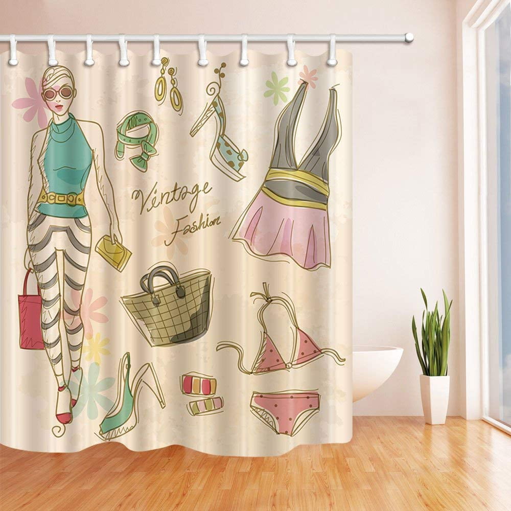 Abisedrin Shower Curtain High Heels With Hooks Waterproof Fabric