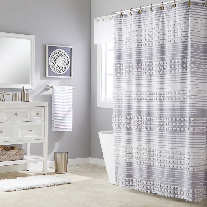 Saturday Knight Puffed Stripe Shower Curtain In Silver Bed Bath