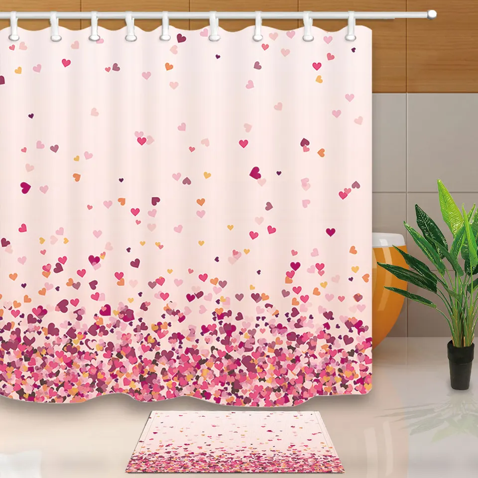 Pink Heart Bathroom Shower Curtains Waterproof Mildew Proof Fabric